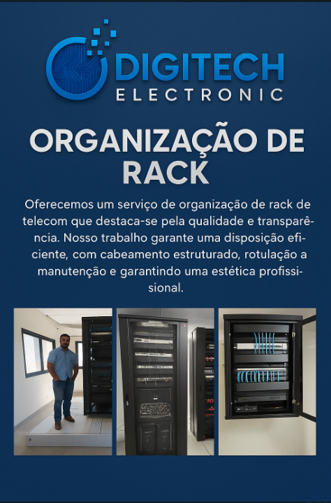Realizamos a organização e padronização de racks de rede, garantindo melhor desempenho, ventilação adequada, fácil identificação dos cabos e manutenção simplificada. Trabalhamos com boas práticas para aumentar a segurança, a confiabilidade e a eficiência da infraestrutura.